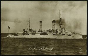 691 | 10 € | I.WELTKRIEG: DEUTSCHE MARINESCHIFFSPOST 1914 -18 : Marine-Schiffspost No. 127 1915 (ca.) monochrome Foto-Ak.: S.M.S. "Beowulf" (= MSP No.127) Küsten-Panzerschiff, zeitweilig Beischiff "Führer der U-Boote" etc. , ungebr. (Verlag M.L. Carstens, Hamburg 20) | ![]() | |