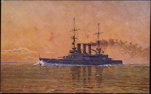 704 | 12 € | I.WELTKRIEG: DEUTSCHE MARINESCHIFFSPOST 1914 -18 : Marine-Schiffspost No. 139 1914 Color-Künstler-Ak.: S.M.S. "Prinzregent Luitpold" = Linienschiff (= MSP No. 139) , sign. A. Schiltsky, 1913, ungebr. (Uhv. Verlag A. Schiltsky) | ![]() | |