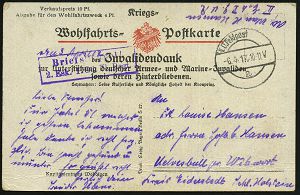 772 | 35 € | I.WELTKRIEG: UNTERSEEBOOTE / UBOOTKRIEG 1914-18 : ÖSTERREICH / DEUTSCHES REICH 1917 (22.3.) 1K-Brücke: WIEN (nicht voll) Color-Kriegsspenden-Kt. Rohö KRIEGSHILFSKASSE (5 Heller) an den U-Bootsteuermann an Bord "U.B. 34" via Berlin C 2, Marine Postbüro, falsche Anschrift u. retour, gemeint war "U.C. 35", gesunken 1918 vor italien. Künste, seltene Feldpost-Retour-Kt. | ![]() | |