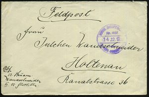 763 | 30 € | I.WELTKRIEG: UNTERSEEBOOTE / UBOOTKRIEG 1914-18 : DEUTSCHES REICH 1916 (14.12.) viol. 1K-Brücken-BPA: KAIS. DEUTSCHES/Nr. 407/ MARINE-SCHIFFSPOST = II. U-Boot-Flottlle (ab Sept. 1916), stationiert in Helgoland , hs. Abs.: "..III. U.-Flottille", Feldpost-Bf. n. Holtenau | ![]() | |