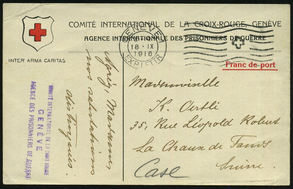 819 | 14 € | I. WELTJRIEG: ROTES KREUZ / SANITÄTSDIENSTE / LAZARETTE 1914-18 : SCHWEIZ 1916 (18.9.) Ma.-WellenSt.: GENEVE 1 , zweifarbige RK-Vordr.-Kt.: COMITE INTERNAT. DE LA CROIX-ROUGE.. AGENCE INT. DES PRISONNIERS DE GUERRE (RK-Kreuzschild) + viol. Abs.-3L, portofreie Inl.-Kt. | ![]() | |