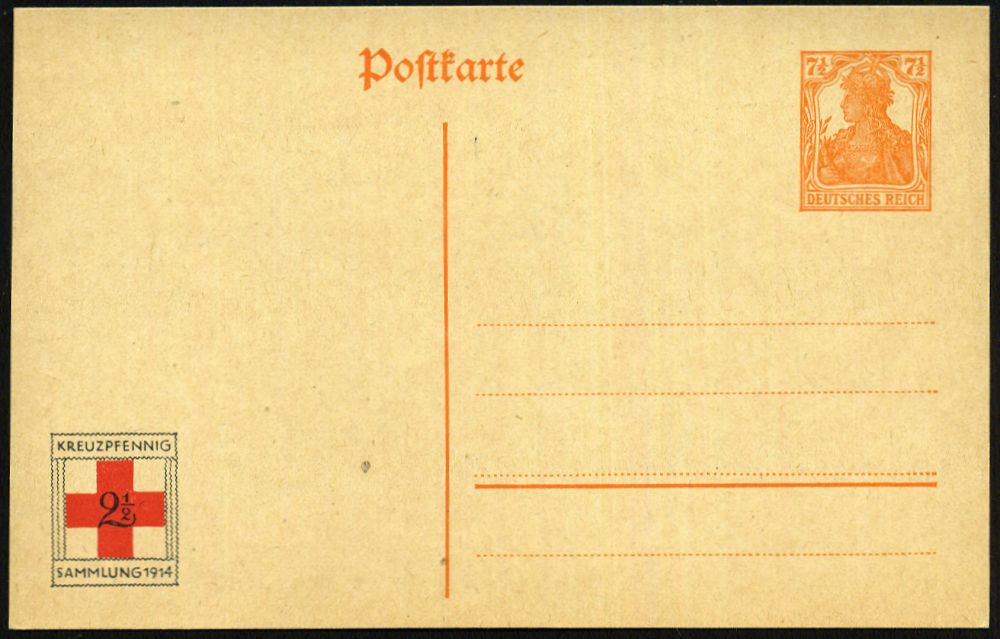 800 | 18 € | I. WELTJRIEG: ROTES KREUZ / SANITÄTSDIENSTE / LAZARETTE 1914-18 : DEUTSCHES REICH 1916 amtl. P 7 1/2 Pf. Germania + amtl. Rotkreuz-Spenden-Zudruck: KREUZPFENNIG / SAMMLUNG 1914 2 1/2 Pf. , ungebr. (Mi.PZD 110) | ![]() | |