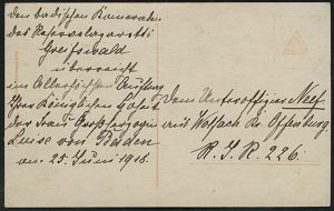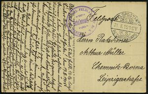 815 | 25 € | I. WELTJRIEG: ROTES KREUZ / SANITÄTSDIENSTE / LAZARETTE 1914-18 : ÖSTERREICH 1915 (11.7.) viol. 1L: K.u.k. Epidemiespital in Troppau + viol. 1L: D e s i n f i z i e r t + 1L: Militärpflege, Feldpost-Kt. n. Wien | ![]() | |