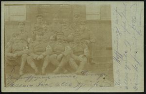 803 | 15 € | I. WELTJRIEG: ROTES KREUZ / SANITÄTSDIENSTE / LAZARETTE 1914-18 : DEUTSCHES REICH 1917 (12.5.) aptierte 1K-Brücke: K. D. Feldpost/** = Tarnstempel + viol. 3K-HdN: Kriegslazarett/Briey + hs Abs.: ".. Kriegslazarett Briey" (Lothringen), individuelle s/w.-Feldpost-Foto-Ak.: Personal des Lazaretts mit Krankenschwester (vor Hospital) n. Freia, schöne Kombination! | ![]() ![]() | |