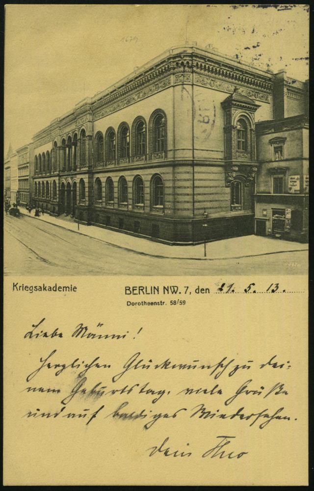 12 | 12 € | DEUTSCHE GESCHICHTE 1871 - 1914 : BERLIN-/ c/ WILMERSDORF 1 1913 (21.5.) 1K-Brücke auf EF 5 Pf. Germania auf Zier-Ak.: Germania-Frankatur als MilItär-Standarte (Soldat) rs. Ansicht: Kriegsakademie ! (Leitung 1906-1914: H. Joh. L. von Moltke) klar gest. Fernkt. (Mi.85 I) | ![]() ![]() | |