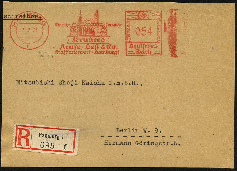 24 | 16 € | DEUTSCHE GESCHICHTE 1871 - 1914 : HAMBURG/ 1/ ..Kruheco/ Kuse,Heß & Co/ Kraftfutterwerk.. 1936 AFS Francotyp "Hakenkreuz" 054 Pf. = Bismarck-Denkmal + RZ: Hamburg 1/f, klar gest. R-Vorderseite (Dü.E-3CE) | ![]() | |