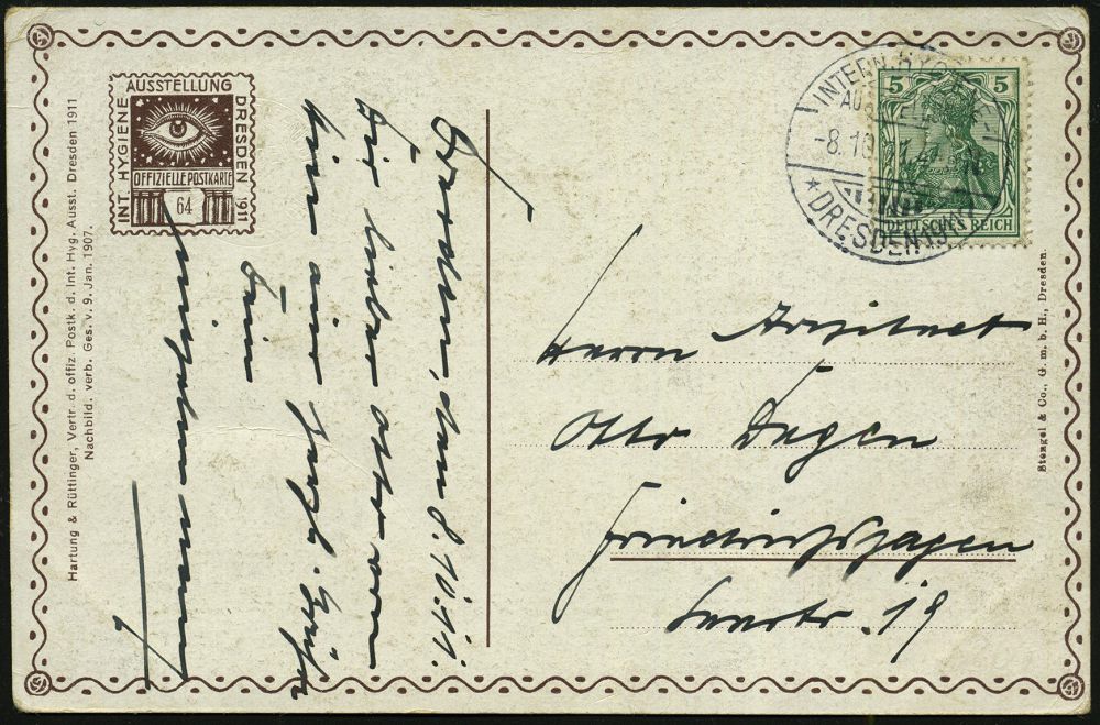 17 | 20 € | DEUTSCHE GESCHICHTE 1871 - 1914 : DRESDEN 1911/ INTERN.HYGIENE-/ AUSSTELLUNG/ *a 1911 (8.10.) SSt auf amtl. Color-Sonder-Kt. Nr.64: Säulen mit Putten, Auge etc., Bedarf (Bo.18 II = UB "a") | ![]() ![]() | |