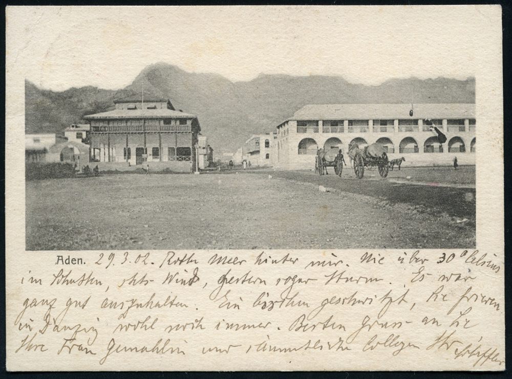 51 | 35 € | DEUTSCHE GESCHICHTE 1871 - 1914 : DEUTSCHES REICH 1902 (29.3.) 1K-BPA: DEUTSCHE SEEPOST/OST-/ASIATISCHE/LINIE/* c = Dampfer "Prinzessin Irene", EF 10 Pf. Germania auf kleiner s/w.-Foto-Ak: Aden n. Langensalza, vs. AS. (Mi.56 EF) | ![]() ![]() | |
