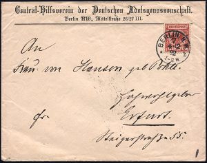 4 | 25 € | DEUTSCHE GESCHICHTE 1871 - 1914 : BERLIN,N.W./ 7/ *b 1892 (4.12.) 1K auf Vordruck-Bf.: Central-Hilfsverein des Deutschen Adelsgenossenschaft (Zierschrift!) + Inhalt: Briefbogen mit gleicher Zierschrift , klar gest.!, 2 Belege kompl.! (Mi.47 EF) | ![]() ![]() | |