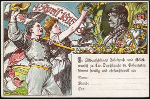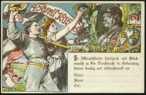 42 | 18 € | DEUTSCHE GESCHICHTE 1871 - 1914 : WÜRTTEMBERG 1895 PP 3 Pf. Ziffer, braun / sämisch: Bismarcks 80. Geburtstags-Huldigung = Bismarck mit Pickehaube, Jubelpaar mit Reichsflagge (u. Krone, Rosen etc.) ungebr. (Frech.PP 10/C 1-02) | ![]() ![]() | |