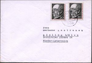 62 | 14 € | DEUTSCHE GESCHICHTE 1871 - 1914 : B.R.D. 1965 (30.6.) 20 Pf. "150. Geburtstag Bismarck", reine MeF: 2 Stück , sauber gest., portorichtiger Ausl.-Bf. (Mi.463 MeF) | ![]() | |