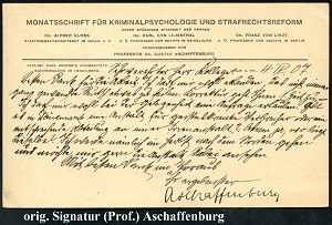 26 | 18 € | DEUTSCHE GESCHICHTE 1871 - 1914 : Köln 1907 (4.4.) 1K-Gitter: CÖLN/*1g auf Vordruck-Kt.: MONATSSCHRIFT FÜR KRIMINALPSYCHOLOGIE U. STRAFRECHTSREFORM.. , Ausl.-Karte n. Viborg , vs. AS., orig, Signatur (Prof.) "Aschaffenburg" (Mi.86 I EF) | ![]() ![]() | |