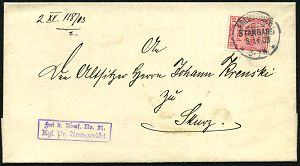 37 | 15 € | DEUTSCHE GESCHICHTE 1871 - 1914 : PREUSSISCH-/ STARGARD/ ** 1903 (8.11.) 1K-Segment auf EF 10 Pf. Dienst, rot + viol. Ra2: Frei lt. Avers. No. 21/Kgl. Pr. Amtsgericht , Fern-Dienst-Bf. n. Skurz (AS) (Mi.D 4 EF + 15.- EUR) | ![]() ![]() | |