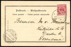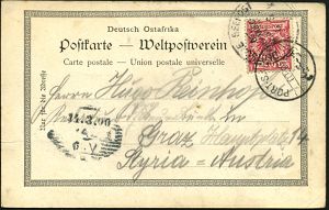48 | 35 € | DEUTSCHE GESCHICHTE 1871 - 1914 : DEUTSCHES REICH 1900 (6.3.) 1K-BPA: DEUTSCHE SEEPOST/OST-/AFRIKANISCHE/HAUPTLINIE/*k a. EF 10 Pf. Adler, Foto-Ak.: D.O.A., Usumbara (Kwasigi) + TS: PORT SAID, Übersee-Ak. n. Graz (AS) | ![]() ![]() | |