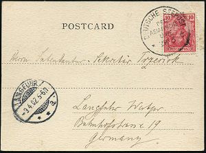 10 | 15 € | DEUTSCHE GESCHICHTE 1871 - 1914 : Berlin-Schöneberg 1905 (28.12.) 1K-Gitter: SCHÖNEBERG/bei Berlin 1/d auf amtl. Orts-P 2 Pf. Germania + Zudruck: Vereinigung ehemaliger Kampfgenossen v. 1864, 1866, 1870-71.. = Veteranenverein Einigungskriege, Orts-Kt. (Mi.PZD 63 X) | ![]() ![]() | |