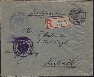 961 | 20 € | DIE REICHSWEHR (1919-35) : BERLIN NW/ *52e 1924 (17.1.) 1K-Brücke + bl.HdN: KOMMANDANTUR BERLIN/WACHTRUPPE.. + viol. HdN: 6.(HANSEAT) KOMP, hs. "FdAR" , seltener Reichswehr-Dienst-R-Bf. . Lübeck! | ![]() | |