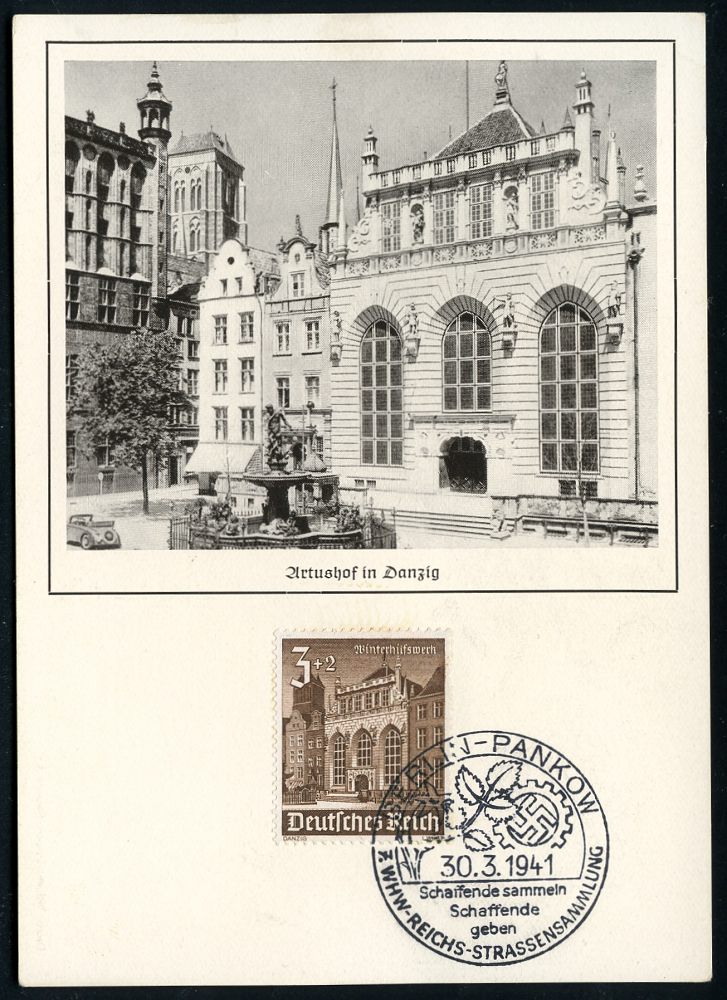 1204 | 15 € | FREIE STADT DANZIG (1920 - 1939) & DANZIG BIS 1944 : DEUTSCHES REICH 1941 (30.3.) 3 Pf. + 2 Pf. WHW Artushof, Danzig (Mi.751) + passender WHW-SSt.: BERLIN-PANKOW (Bo.357) klar gest. Maximum-Karte (Mi.751) | ![]() | |