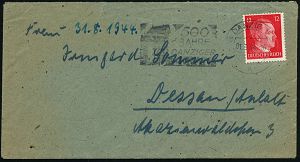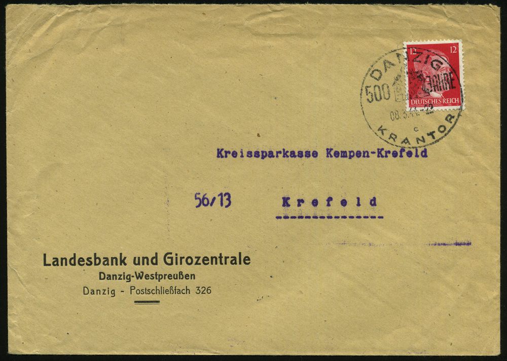 1198 | 18 € | FREIE STADT DANZIG (1920 - 1939) & DANZIG BIS 1944 : DANZIG/ 500 JAHRE/ c/ KRANTOR 1944 (8.3.) HWSt mit UB "c" = Krantor (Handbuch Nr.35.0 + 25.- EUR) Firmen-Bf.: Landesbank..Danzig-Westpreußen (Bo.18 c, nur 12 Monate verwendet) | ![]() | |