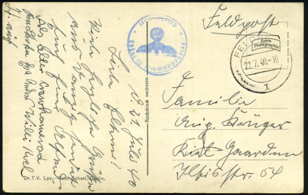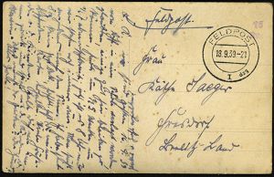 1193 | 60 € | FREIE STADT DANZIG (1920 - 1939) & DANZIG BIS 1944 : DANZIG 1940 (22.7.) seltener, aptierter Feldpost-2K: FELDPOST/I = d z g entfernt! (rechts oben gering undeutl.) + blauer 1K-HdN: Feldpostnr. M 19343 = Torpedoboot "T 11", s/w.-Feldpost-Ak.: Nach der Kapitulation der Westerplatt n. Kiel, seltene Kombination! (Mi.6 + 200.- EUR) | ![]() ![]() | |