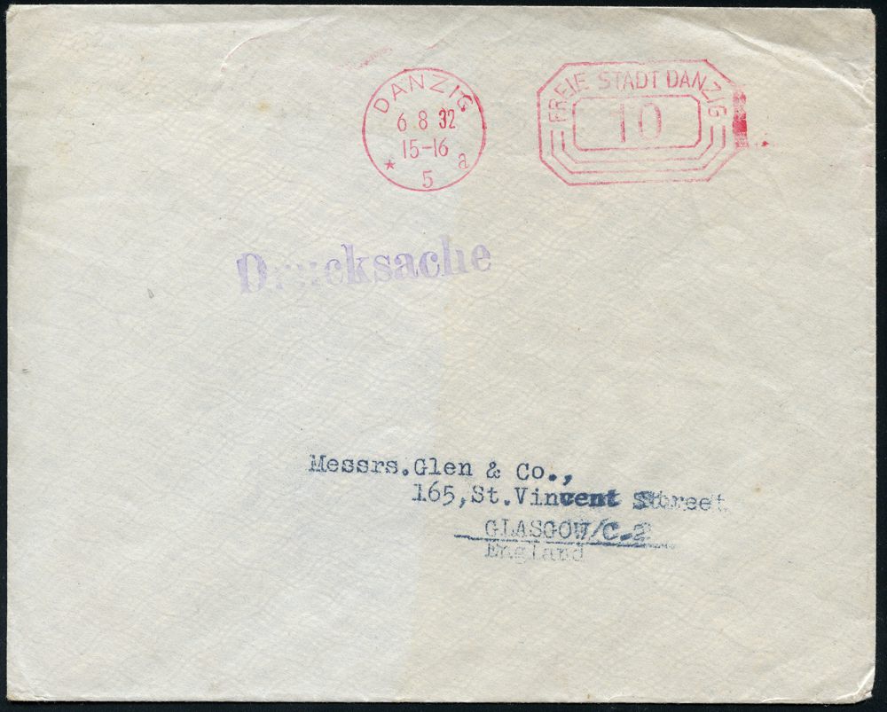 1177 | 28 € | FREIE STADT DANZIG (1920 - 1939) & DANZIG BIS 1944 : DANZIG/ 1/ Postschließfach 83 1932 (6.6.) AFS Francotyp Bogenrechteck "FREIE STADT DANZIG" 010 Pf. , klar gest. Zeitungs-Streifband.: DANZIGER PRIVAT-ACTIEN-BANK n. Goslar, seltene Portostufe u. Verwendung! (Handbuch Nr. 19) | ![]() | |