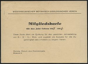 1181 | 18 € | FREIE STADT DANZIG (1920 - 1939) & DANZIG BIS 1944 : DANZIG 1935 (12.4.) MWSt.: DANZIG 5/Danzig/Dein Reiseziel auf Dienst-Kt: Westpreuß. Botanisch-Zoolog.Verein (= Mitglieds-karte!) Orts-Karte (Mi.216 y EF) | ![]() ![]() | |