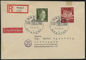 1199 | 20 € | FREIE STADT DANZIG (1920 - 1939) & DANZIG BIS 1944 : DANZIG/ d/ 500 JAHRE/ KRANTOR 1944 (11.5.) SSt mit UB "d" = Krantor 2x + RZ: Danzig 5 (Seitenriß geschl., kl. Fleck) klar gest. Fern-R-Bf. (Bo.18 d) | ![]() | |
