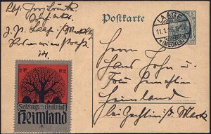 1258 | 25 € | NS-VORLÄUFER : LAAGE/ *(MECKLB.)/ a 1916 (11.1.) 1K-Gitter auf Inl.-P 5 Pf. Germania , grün + Propaganda-Spedenmarke 2 Pf.: Siedlungs-Ges. Heimland mit H a k e n k r e u z !, (Mi.P 96) | ![]() | |