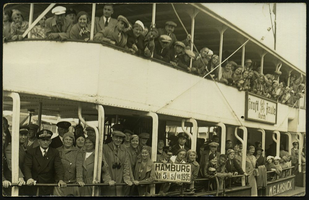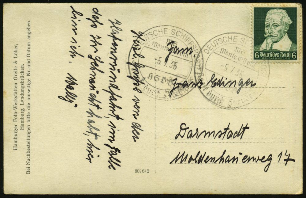 1491 | 28 € | K.d.F.: KRAFT DURCH FREUDE : DEUTSCHES REICH 1935 (5.7.) 2K-Bord-PA: DEUTSCHE SCHIFFSPOST/MS/"Monte Olivia"/HSDG/Kraft durch Freude (Nr.1048 = ohne UB), 2x auf EF 6 Pf. H. Schütz (Mi.573 EF) seltene, individuelle s/w.-Foto-Ak.: Unterdeck der "Monte Olivia" (in Hamburg) Bedarf | ![]() ![]() | |