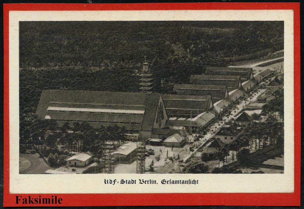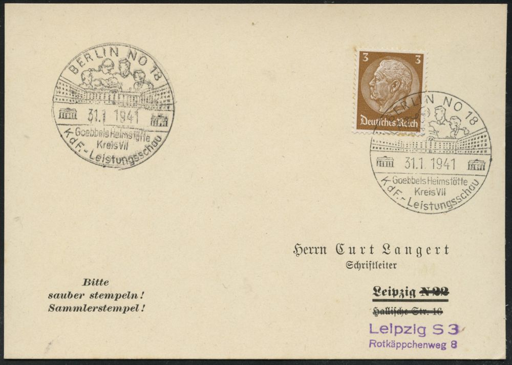 1472 | 18 € | K.d.F.: KRAFT DURCH FREUDE : BERLIN NO18/ Goebbels Heimstätte/ Kreis VII/ K d F.-Leistungsschau 1941 (4.2.) seltener SSt (Familie, NS-Wohnblock, 2x Brandenbg. Tor) klar gest. Inl.-Karte (Bo.351) | ![]() | |