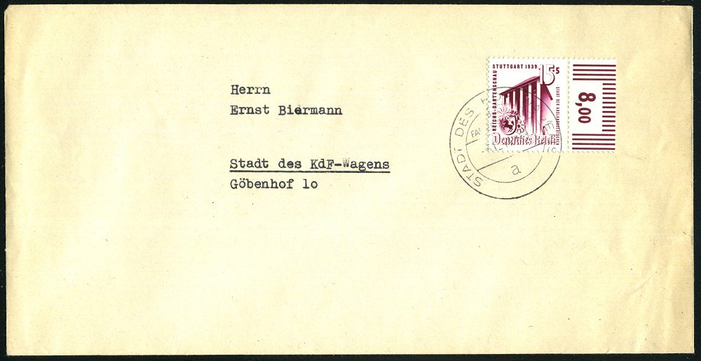 1482 | 25 € | K.d.F.: KRAFT DURCH FREUDE : STADT DES KDF-WAGENS/ BEI/ FALLERSLEBEN/ g 1940 (2.7.) HWSt , klar gest. Bedarfs-Bf. (Bochmann nicht gelistet) | ![]() | |