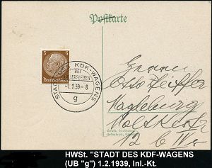 1481 | 18 € | K.d.F.: KRAFT DURCH FREUDE : STADT DES KDF.-WAGENS/ BEI/ FALLERSLEBEN/ g 1939 (1.2.) HWSt = Hersteller VW-Käfer, Militär-Variante Typ 51, Kübel- u. Amphibien-Kübel Typ 82 bzw. 128-166, klar gest. Inl.-Karte (Bochmann nicht gelistet, Erstverwendungsjahr!) | ![]() | |