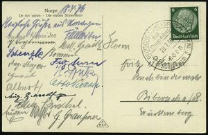1494 | 20 € | K.d.F.: KRAFT DURCH FREUDE : DEUTSCHES REICH 1936 (18.7.) 2K-Bord-PA: DEUTSCHE SCHIFFSPOST/D./DER DEUTSCHE/NDL/K d F auf EF 6 Pf. Hindenbg. (Mi.516/EF) s/w.-Foto-Ak: Norwegen Balestrand-Balholm n. Echte (Nr.1054 ex "Sierra Morena") | ![]() ![]() | |