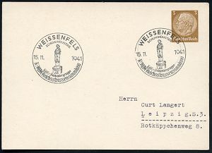1518 | 16 € | WINTERHILFSWERK / W.H.W. : WEISSENFELS/ SCHUHINDUSTRIE/ KdF.-Sammlergruppe/ K.-WHW.-Reichsstrassensammlung 1941 (15.11.) SSt = Schusterjungen-Denkmal auf PP 3 Pf. Hindenbg. , braun (blanco Mi.PP 122/A 1) klar gest. Inl.-Karte (Bo.4) | ![]() | |