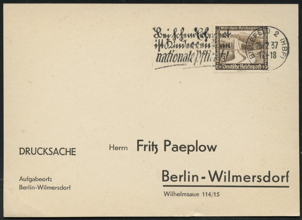 1628 | 18 € | NS-RASSENEUGENIK & EUTHANASIE : BIELEFELD 2 (HBF)/ t/ Bei hohem Erbwert/ ist Kinderreichtum/ nationale Pflicht! 1937 (25.2.) seltener MWSt, Text in Sütterlin! , klar gest. Inl.-Karte (Bo.S 237 A , nur 11 Monate in nur 6 Orten verwendet) | ![]() | |