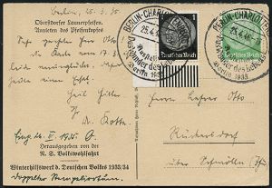 1627 | 40 € | NS-RASSENEUGENIK & EUTHANASIE : BERLIN-CHARLOTTENBURG 5/ Ausstellung/ Das Wunder des Lebens 1935 (25.4.) seltener SSt , Ausstellung mit rassenbiolog. Thematik! (1935 gründete Himmler "Lebensborn e.V.") ausgestellt: "Der Gläserne Mensch" , veterinärtech. Ausstellungsobjekte etc. (Ausstellungsarchitekt Herbert Bayer, 1900 - 1985), WHW-Bedarfs-Fern-Kt. (Bo.162) | ![]() | |