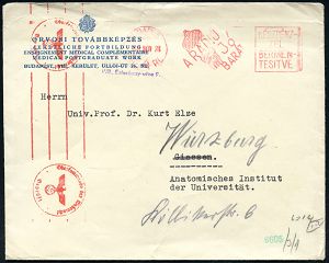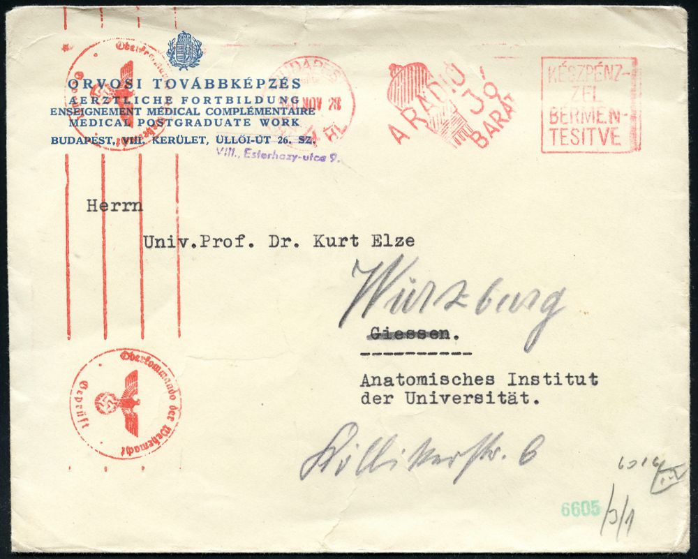1709 | 18 € | DIE ACHSENMÄCHTE: DEUTSCHES REICH / ITALIEN / JAPAN / FINNLAND / BULGARIEN / KROATIEN / SLOWAKEI / UNGARN / RUMÄNIEN u. : UNGARN 1940 (28.11.) AFS.: BUDAPEST/A RADIO/Jó/BARAT = Radio-Röhre + roter OKW-Band-Zensur-St.: Geprüft = Wien (Rie.G-22, + 30 Pkte.) nachgesandter Ausl.-Zensur-Bf: AERZTLICHE FORTBILDUNG... n. Gießen/ Würzburg | ![]() | |