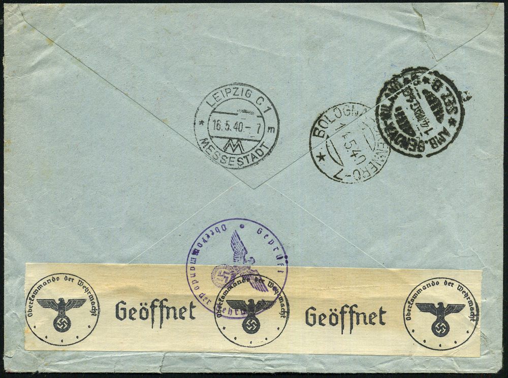 1693 | 30 € | DIE ACHSENMÄCHTE: DEUTSCHES REICH / ITALIEN / JAPAN / FINNLAND / BULGARIEN / KROATIEN / SLOWAKEI / UNGARN / RUMÄNIEN u. : ITALIEN 1940 (11.5.) AFS Francotyp "Liktorenbündel": GENOVA/BANCA NAZIONALE DEL LAVORO.. (Wappen) mit faschistischer Jahreszahl XVIII + schw. R-Stempel: GENOVA - CENTRO (Bf. rs. kl. Klappenriß) rs. OKW-Zensur-1K: Geprüft + Zensurstreifen: Geöffnet = München (Rie.D-3, D-58 + 200 Pkte., nur Jan.-Mai 1940 verwendet!) Ausl.-Zensur-R-Bf. n. Leipzig, rs. div. TS/AS. (Francotyp CEh) | ![]() ![]() | |