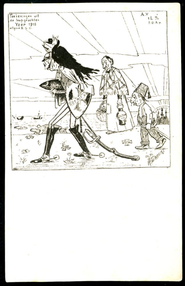 114 | 15 € | DIE REGENTSCHAFT WILHELMS II. 1888 - 1918 : NIEDERLANDE 1915 s/w.-Künstler-Ak.: Teekeningen uit de loopgrachten YZER 1915.. = Wilhelm II mit Granate u. verwundetem Adler etc. (rs. Text) ungebr. ohne Uhv mit Künstler-Signatur | ![]() | |