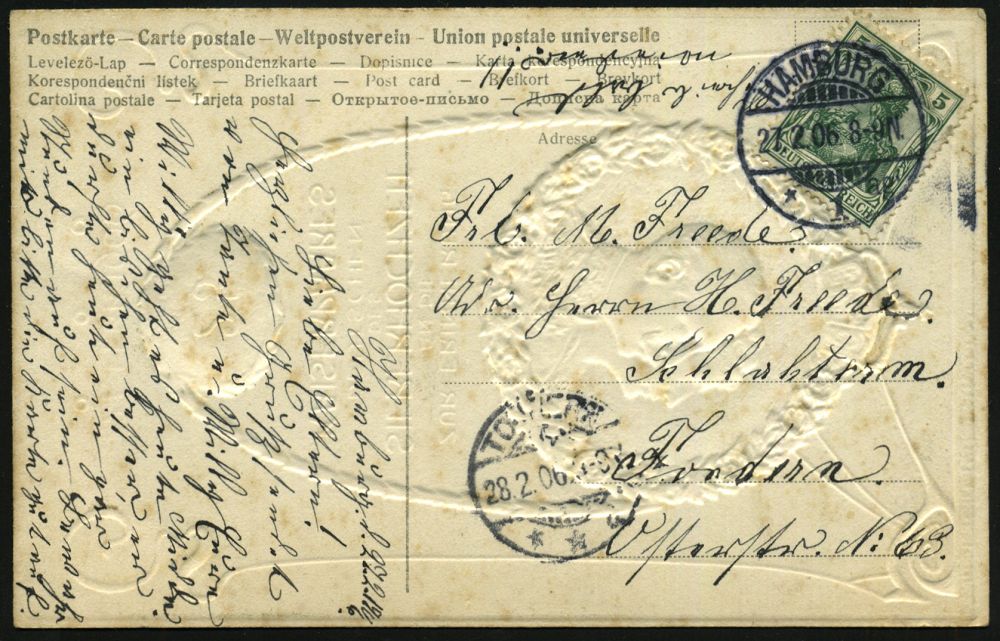 91 | 18 € | DIE REGENTSCHAFT WILHELMS II. 1888 - 1918 : HAMBURG/ *1ag 1906 (27.2.) 1K-Gitter auf monochromer Color-Relief-Ak.: SILBERHOCHZEIT DES DEUTSCHEN KAISERPAARES 27. FEBR. 1906 mit Blindprägung des Kaiser-Paares etc., Bedarf, selten! | ![]() ![]() | |