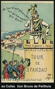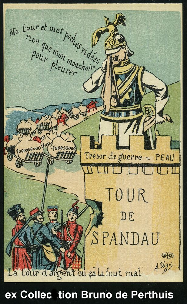 100 | 18 € | DIE REGENTSCHAFT WILHELMS II. 1888 - 1918 : FRANKREICH 1914 Color-Propaganda-Künstler-Ak.: Mein Turm und meine Taschen sind leer.. Wilhelm II. weinend auf dem Spandauer Julius-Turm (beherbergt den deutschen Staatsschatz), davor Entente u. Abtransport der Geldsäcken, sign. Ugd (Uhv. ELD = Edition Le Deley, Paris) ungebr., selten! | ![]() | |