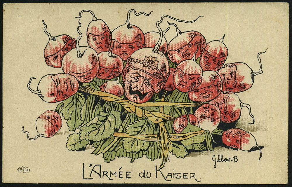 107 | 14 € | DIE REGENTSCHAFT WILHELMS II. 1888 - 1918 : FRANKREICH 1915 (8.12.) Color-Propaganda-Künstler-Ak.: Die Armee des Kaisers = Radieschen mit Zipfelmützen, sign. Gilbert. B (Uhv: ELD = Edition Le Deley, Paris) rs. Feldpostext, ungebr. | ![]() | |