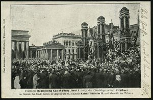 89 | 15 € | DIE REGENTSCHAFT WILHELMS II. 1888 - 1918 : Berlin 1900 (7.5.) s/w.-Foto-Sonder-Ak: Begrüssung Kaiser Franz Josef I (mit Festtribüne am Brandenbg.Tor) Bedarfs-Kt. n. Quedlinburg, vs. AS (Verlag P. Kaufmann) | ![]() ![]() | |