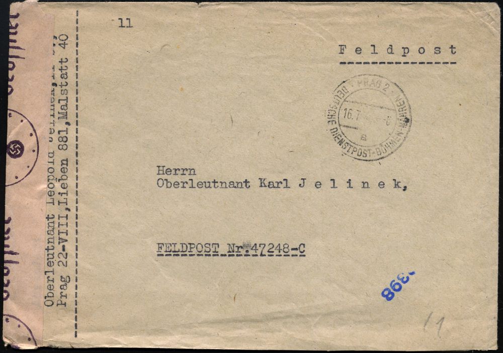 1862 | 40 € | CSR-BESETZUNG 1939 : BÖHMEN & MÄHREN 1944 (16.7.) 2K-Steg: PRAG 2/a/DT.DIENSTPOST-BÖHMEN-MÄREN + Zensurstreifen: Geöffnet/ Feldpost-prüfstelle (Mi.1) + bl. Zensur-1L: 2398 = Bozen! (Michel unbekannt!), Feldpost-Zensur-Bf. eines Tschechen Prager Regierungstruppe an Tschechen in der Fp.-Einheit 47248 C = Einsatz Gen. Insp. I Polizei , Nord- Italien!, sehr seltener Beleg Heimat - Front! (Mi.B 3) | ![]() ![]() | |