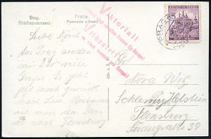 1834 | 16 € | CSR-BESETZUNG 1939 : BÖHMEN & MÄHREN 1941 (2.8.) 2K-Steg: PRAG 65/ PRAHA 65 auf EF 60 H. Kuttenberg + amtl., roter Propaganda-HdN: Viktoria !!/ Deutschland siegt an allen Fronten für Europa! (zweisprachig) s/w.-Foto-Ak.: Brücken-Panorama, Bedarf (Mi.27 EF) | ![]() ![]() | |