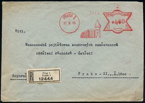 1833 | 18 € | CSR-BESETZUNG 1939 : BÖHMEN & MÄHREN 1941 (19.2.) AFS Francotyp: PRAG 1/PRAHA 1/Lipa/AKCIOVA POJISTOVNA (Lindenzweig) Inl.-Brief (Francotyp Ah) | ![]() | |