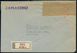 1853 | 35 € | CSR-BESETZUNG 1939 : TSCHECHOSLOWAKEI 1947 (27.10.) stummer AFS Francotyp mit Wertrahmen CESKOSLOVENSKO: PRAHA 1 ohne Text = Tschechische Escompte-Bank, deutsche Inschrift entfernt mit CSR-Wertrahmen (Pulverturm) + alter B & M.-R-Zettel: Prag 1/ Praha 1, unverändert, seltener Orts-R-Bf., rs. alter aptierter 2K: PRAHA 36, deutscher Ortsname entfernt (vergl. Los 1889 !) | ![]() ![]() | |