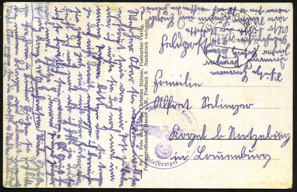1895 | 14 € | DEUTSCHE WEHRMACHT 1933 - 31.8.1939 : GELNHAUSEN/ f 1940 (18.12.) 2K-Steg + viol. 1K-HdN: Panzer-Jäger Ers.-Komp. 214 + hs. Abs., s/w.-Feldpost-Foto-Ak.: Gelnhausen - Kaserne n. Ratzeburg | ![]() ![]() | |