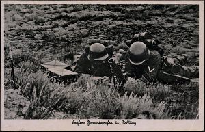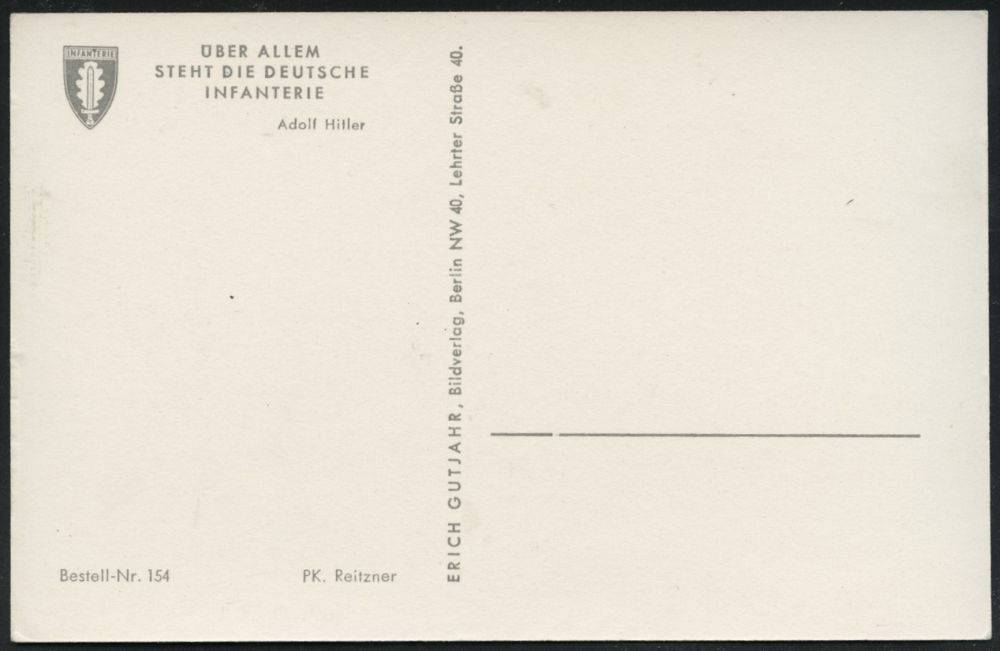 1918 | 18 € | DEUTSCHE WEHRMACHT 1933 - 31.8.1939 : DEUTSCHES REICH 1941 (ca.) 2 verschiedene s/w.-Foto-Ak.: Leichtes bzw. schweres Maschinengewehr.. (von PK-Fotograf Reitzner) jmit Hitler-Zitat: "Über allem steht die Infanterie", e ungebr., Einzelausruf möglich: je 11.- EUR (Nr.154-155, E. Gutjahr-Verlag, Berlin) | ![]() ![]() ![]() | |