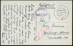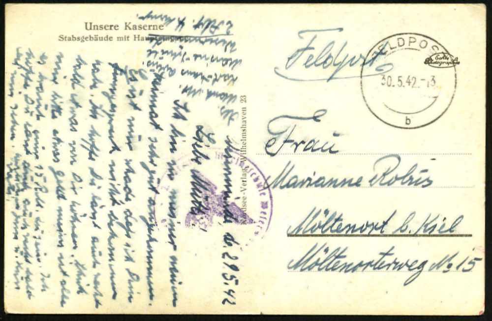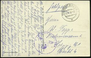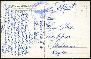 1913 | 14 € | DEUTSCHE WEHRMACHT 1933 - 31.8.1939 : Wesermünde 1942 (30.5.) 2K-Tarnstempel: FELDPOST/b + viol. HdN: Marineschule Wesermünde + entspr. hs. Abs., s/w.-Feldpost-Foto-Ak.: Stabsgebäude mit Haupteingang (Uhv. Nordseeverlag Wilhelmshaven 23) n. Möltenort-Kiel (Mi.2) | ![]() ![]() | |