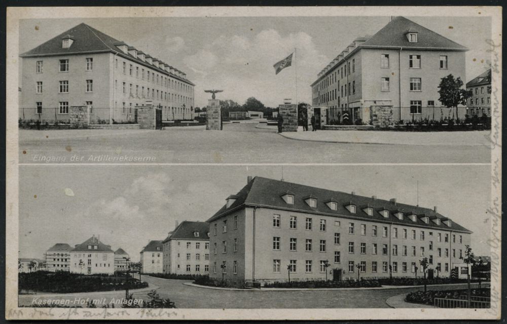 1893 | 12 € | DEUTSCHE WEHRMACHT 1933 - 31.8.1939 : Frankfurt/ Oder 1939 (ca.) s/w.-Foto-Ak.: III. Abt. Art.-Regt. 3, Kasernen mit Hakenkreuzflaggen (rs. beschriftet) ungebr. | ![]() | |